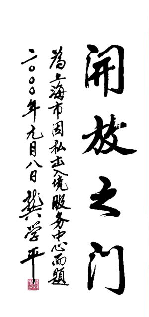 “中心”业务受市政府教委、外办和公安局等部门的领导与指导。2000年,时任上海市副市长龚学平同志为“中心”题词“开放之门”。